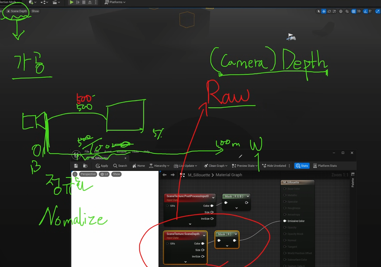 Custom Depth -> 선택하지않은 오브잭트들은 무시된다.