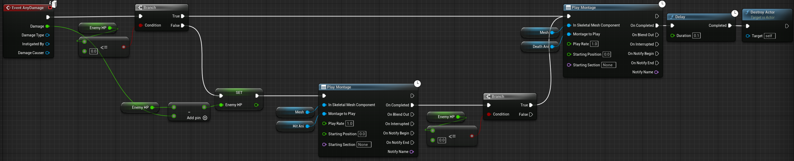 재사용성을 위해 데미지 받는 부분에서 Montage부분은 다른 Enemy가 설정할 수 있도록 변수화 하였다.