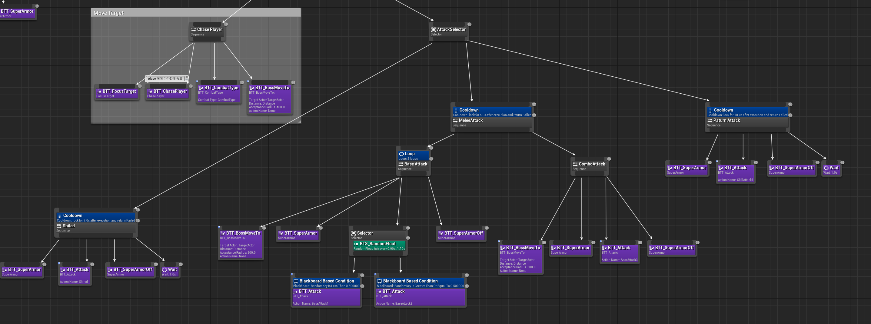 -왼쪽, 오른쪽은 랜덤으로 2번 실행 후, ComboAttack으로 가는 형태이다.