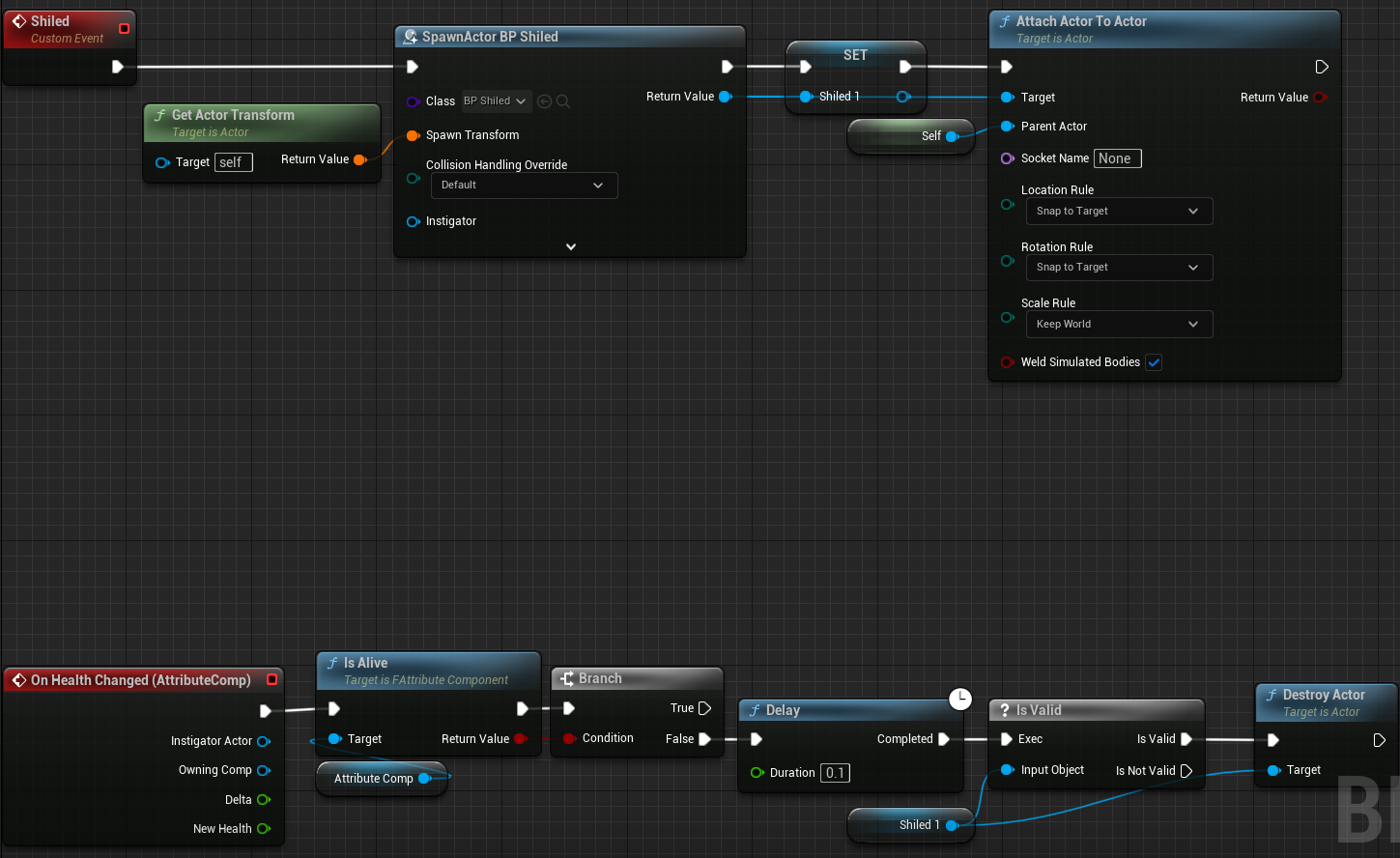 - Shiled가 생성되면 생명주기를 주어 그 시간에 쉴드의 체력이 있는지 없는지에 따라서 삭제되거나 범위 데미지를 준다.