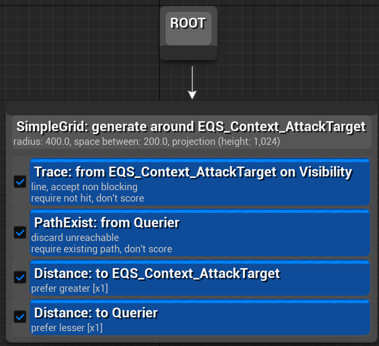 Target의 주변을 제외하고 거리가 100~ 300사이를 움직이게 하는 EQS이다.