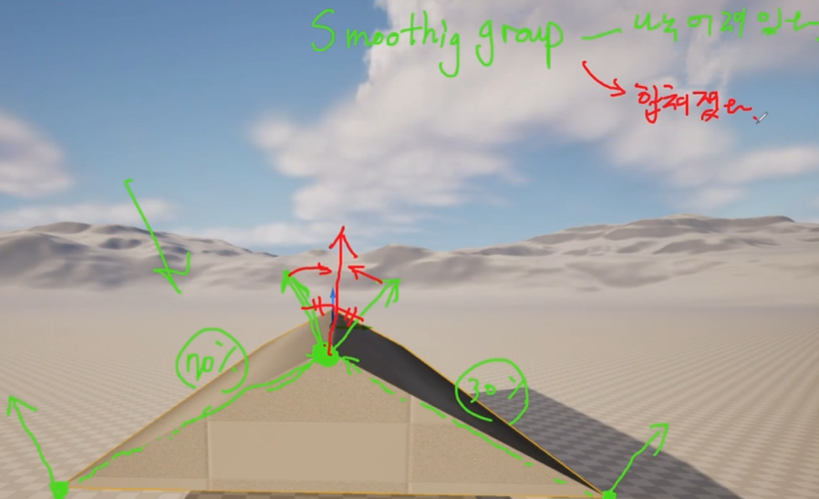 방향에 따른 빛의 방향 (맞지않으면 Normal이 이상하게나온다.)